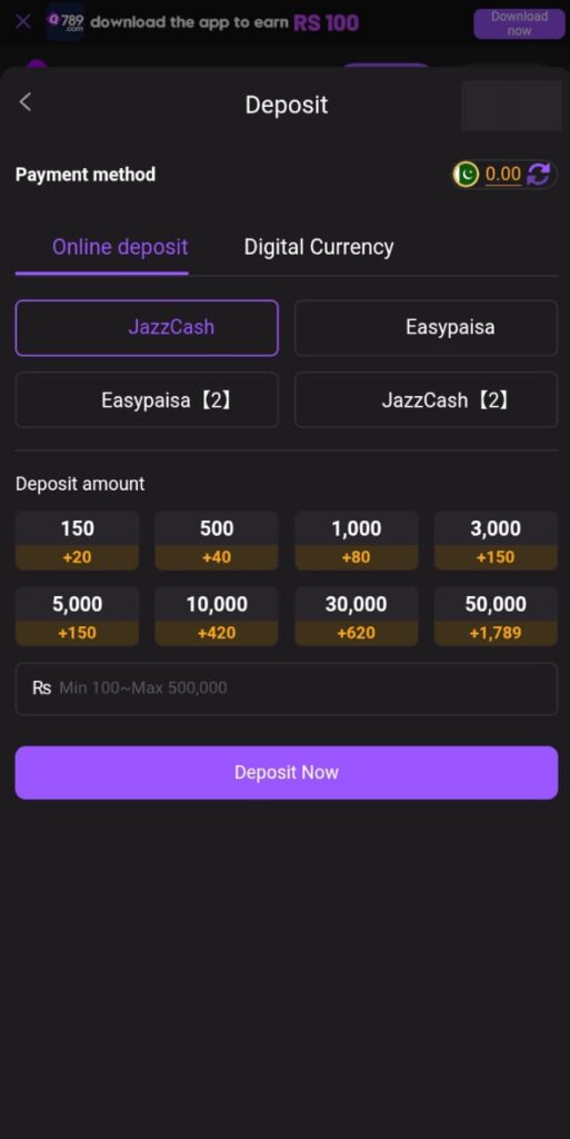 - First Deposit: Choose a payment method and deposit the minimum RS 150 U 1 amount.