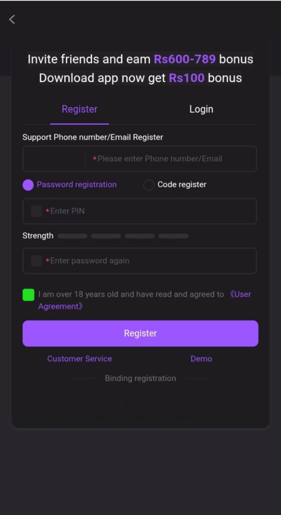 After installing the APK on your Android or iOS device - Receive an RS 100 bonus.