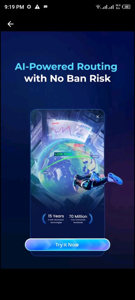 The GearUp booster is a gaming VPN or lag-reduction app especially designed for online gamers. If you are playing PUBG, Free Fire, or Call of Duty and have any issues, you can face things like high ping or lag during a match. So, the GearUp boost optimizes the connection or provides smooth gameplay. Simply, the app optimizes your internet router to lower ping or reduce lag.